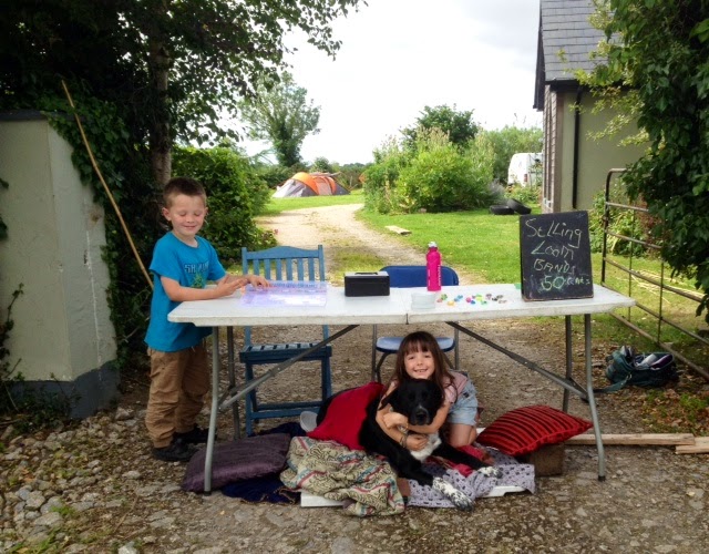 Loom band mania hit the country this year and reached Poppy Cottage with a bang. One day recently, I bought loom band bracelets from some children who live on the cul de sac near the children’s Nana May. I felt sorry for the vendors, as there was little chance of sales with so few passers-by. My two seen the possibility for earning cash for themselves and so, set up a loom-band bracelet making operation that evening. It resembled a sweat shop, such was the level of work. 8.30am the following morning, the Poppy Cottage shop was opened. There was great attention to detail with comfy blankets for themselves and the dog to rest, underneath the sales table.